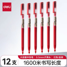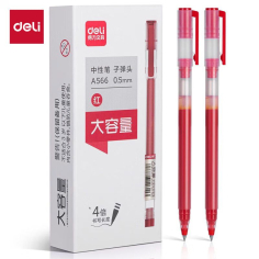 得力(deli)A566 红色中性笔0.5mm子弹头4倍书写大容量笔芯笔杆一体化水笔 书写用笔类用具