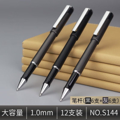 得力(deli)S144 签字笔中性笔1.0加粗大容量黑色水笔拔帽笔 书写用笔类用具