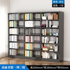 臻远 ZY-SJB-18 6层钢制书架双面一列三组黑色