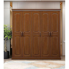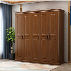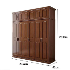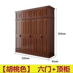 臻远 ZY-ZZGY611 更衣柜 实木衣柜新中式衣橱木质衣柜六门加顶胡桃色2350*610*2530mm