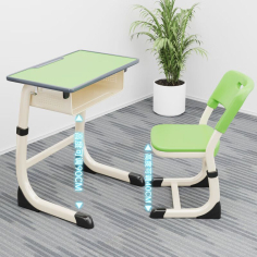 臻远 ZY-JX0906 教学、实验用桌 加厚升降课桌椅培训塑料书桌灰色双人加粗管升降