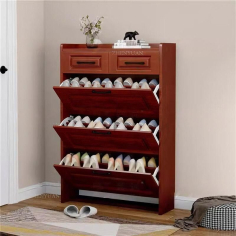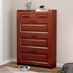 臻远 ZY4022014 木质翻斗鞋柜入户门口窄边鞋柜双层双抽屉
