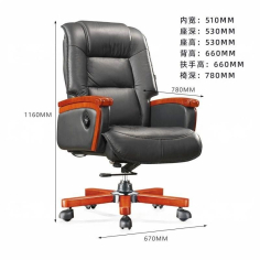 臻远 ZY-7573 办公椅 办公中班椅办公皮椅升降转椅电脑椅黑牛皮780*670*1160mm