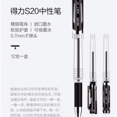 得力/deli S20 0.7mm黑色中性笔签字笔水笔中性笔子弹头笔 书写用笔类用具