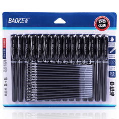 宝克(BAOKE) 15+15PC008 0.5mm黑色办公中性笔水笔签字笔套装 15支+15支笔芯/卡