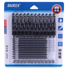 宝克(BAOKE) 12+12PC880 0.5mm子弹头中性笔 办公水笔签字笔套装 12支笔+12支笔芯/卡