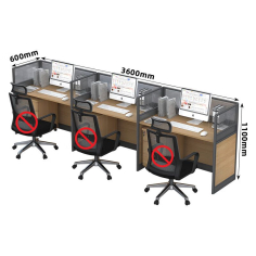 臻远 GWC-003 办公桌 职员办公桌屏风桌组合员工位电脑桌职员工位直排三人位3600*600*1100mm