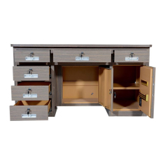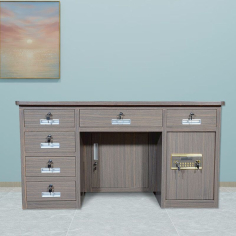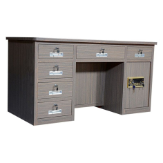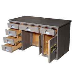 臻远 BXZ-19 办公桌 全钢制保险桌一体投币收银财务桌1.4m黑枫木六斗电子锁1400*700*750mm