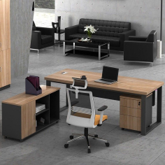 臻远 ZY3110218 办公桌 简约现代大班台钢架桌带副柜可移动简易桌子2.4米桌子+活动柜+侧柜加厚2400*1200*760mm