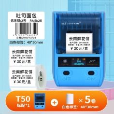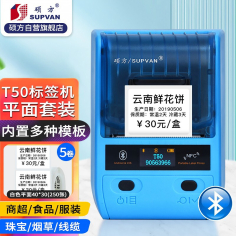硕方 标签机套装T50价格标签打印机超市专用价签线缆食品商用服装蓝牙手持便携家用小型不干胶热敏贴纸条 T50平面套装一5卷平面40*30mm白色250张