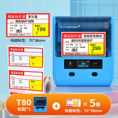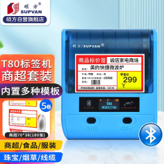 硕方 标签机套装T50价格标签打印机超市专用价签线缆食品商用服装蓝牙手持便携家用小型不干胶热敏贴纸条 T80商超套装二5卷商超70*38mm红色180张