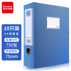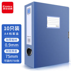 齐心(Comix) HC-75-10 档案盒 板材厚1.0mm 75mm加厚粘扣档案盒 A4文件盒资料盒 蓝色 10个装