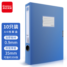 齐心(Comix)HC-35-10 档案盒 10个装 35mm加厚粘扣档案盒 板材厚度1mm A4文件盒/资料盒 蓝色