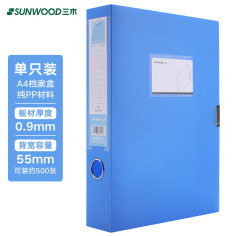 三木(SUNWOOD) S-55 档案盒 A4/55mm标准型档案盒/加厚文件资料盒/粘扣收纳盒 蓝色