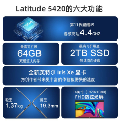 戴尔(DELL)latitude 5420 14英寸轻薄高性能商用办公笔记本电脑i5-1145G7 16G 1T固/锐炬Xe/高分/定制