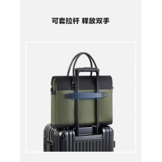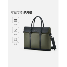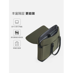 爱华仕 OCG3136 收纳包 出差大容量横款男士手提包轻奢拼接15.6英寸电脑包岩石绿