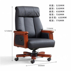 臻远 ZY-7563 办公椅 办公大班椅办公皮椅转椅电脑椅黑牛皮770*690*1210mm