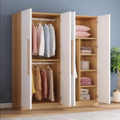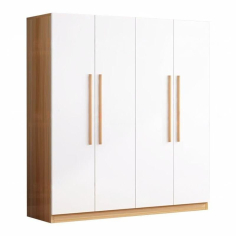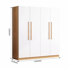 臻远 ZY4022329 更衣柜 简约木质衣柜四门衣柜衣服收纳柜 浅胡桃白门1800*1400*500mm