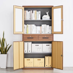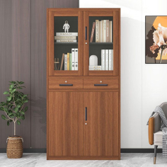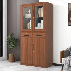 臻远 ZY-WJGE-03 文件柜 钢制办公柜铁皮柜仿木纹书籍柜资料储物档案柜深樱桃通双节900*400*1850mm