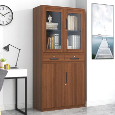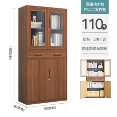 臻远 ZY-WJGE-04 文件柜 钢制办公柜铁皮柜仿木纹书籍柜资料储物档案柜深樱桃中二斗900*400*1850mm