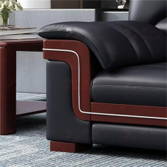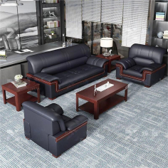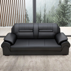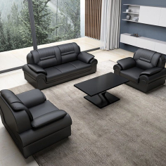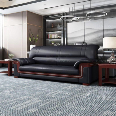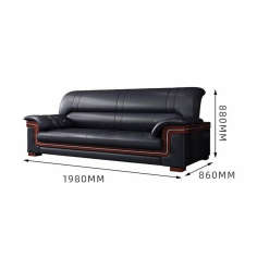 臻远 ZYJJ-80250 三人沙发 办公室沙发会客沙发黑色牛皮三人位2180*860*920mm