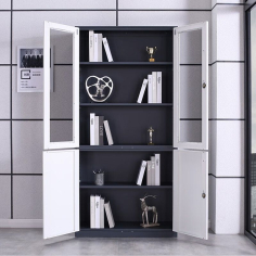 臻远 ZY-WSGB-01 文件柜 加厚铁皮柜玻璃凭证柜储物柜带锁大器械柜灰白色