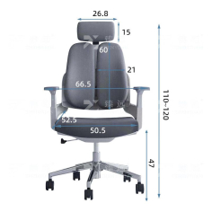 臻远 ZY-6678 转椅网面办公椅电脑椅护腰双背网布椅白胶665*525*1200mm