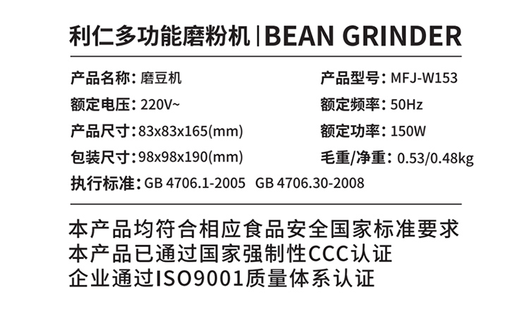 商品名称:利仁(Liven)MFJ-W153 豆浆机 研磨机磨粉机 多功能电动打粉机搅拌机超细