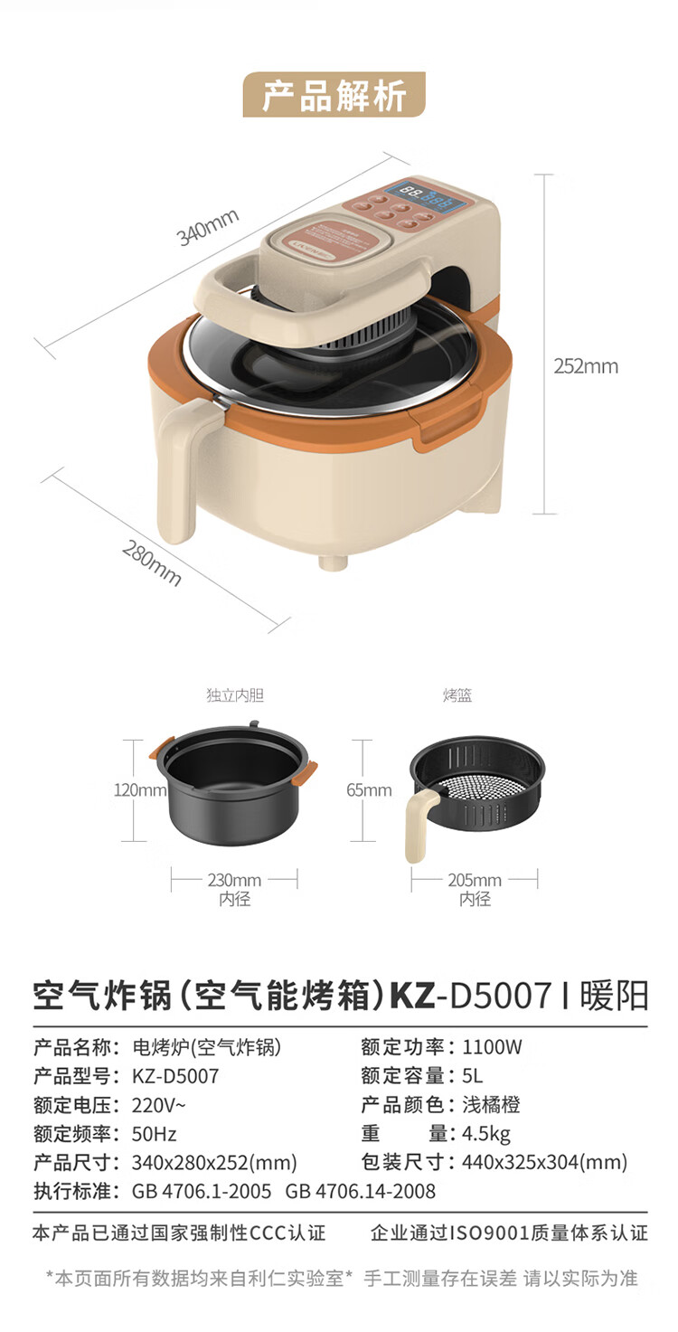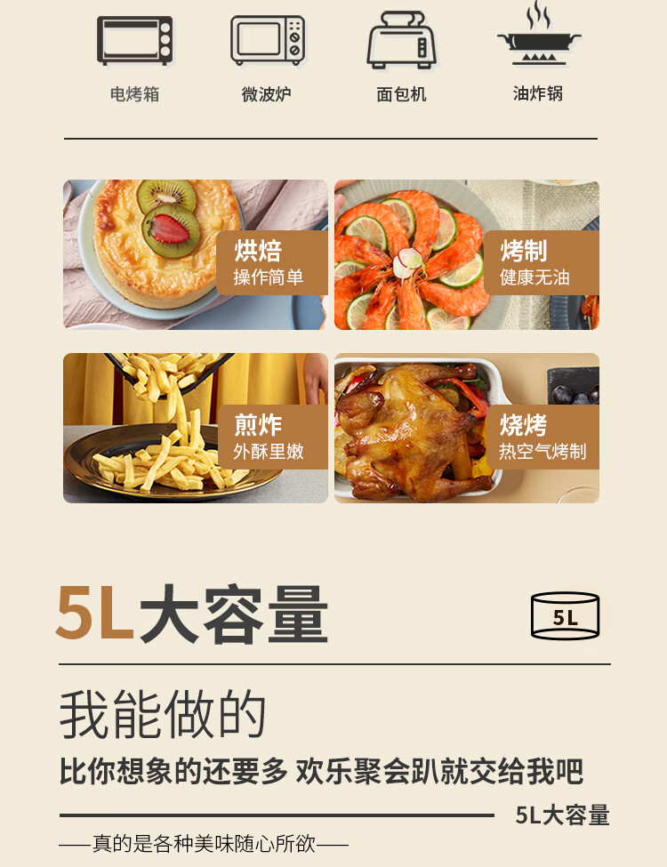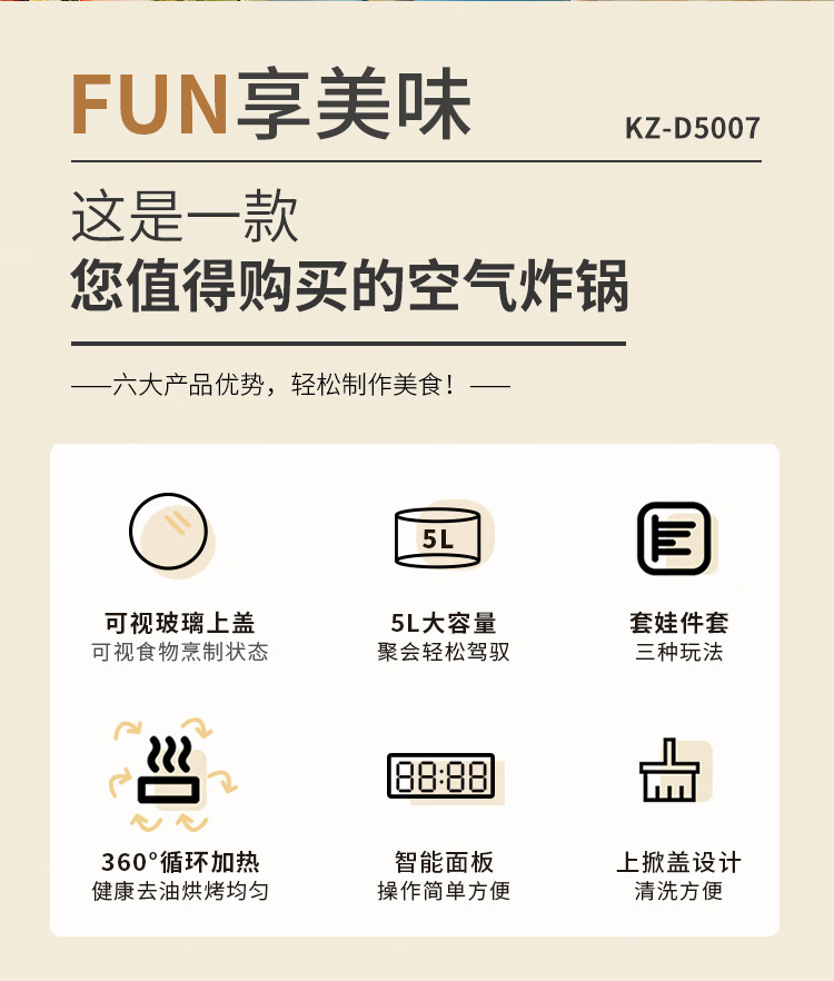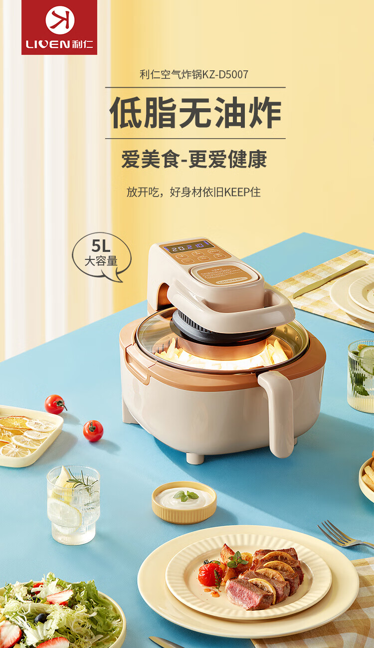 商品名称:利仁(Liven)KZ-D5007 空气炸锅 可视5升大容量智能无油电炸锅蒸汽炸锅