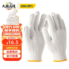 得力(deli) DL521001 加厚劳保手套棉线手套细纱加密棉纱手套批发加厚耐磨工作手套12双应急常备