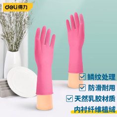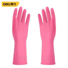 得力(deli) 乳胶家务手套劳保 餐饮卫生工业清洁 防滑耐用高弹性不易破损M中号粉色款