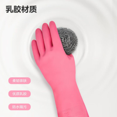 得力(deli) DL526103 乳胶家务手套劳保 餐饮工业清洁 防滑耐用高弹不易破损 M中号绿色粉色两副装