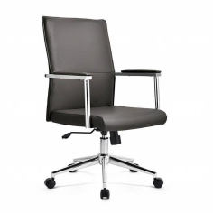 臻远 ZY-7702 办公椅 转椅电脑学习会客皮椅灰色西皮580*510*970mm