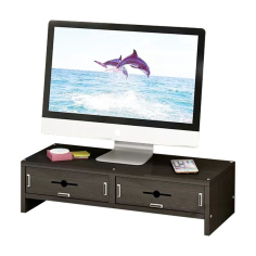 臻远 ZY-ZMZWJ-15 电脑支架 桌面置物架显示器增高架双层隔断2抽屉 黑胡桃