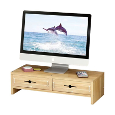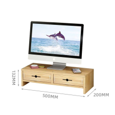 臻远 ZY-ZMZWJ-14 电脑支架 桌面置物架显示器增高架双层隔断2抽屉 浅胡桃