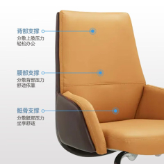臻远 ZY-6710 弓形椅电脑椅商务办公椅靠背皮椅黄色西皮660*510*1000mm