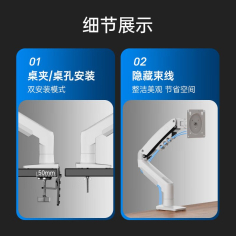 松能 T690-1B 电脑支架 显示器支架曲面屏旋转屏幕双臂机械vesa面板桌面无孔支架臂12KG承重