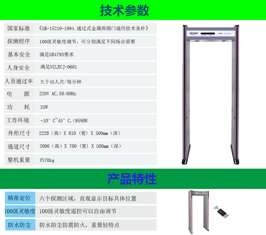 商品名称:科正鑫(KZX)KZX-3A 门禁系统 安检门 防雨防震六区数码显示带灯金属探测器 高灵敏 遥控 黑色 1台