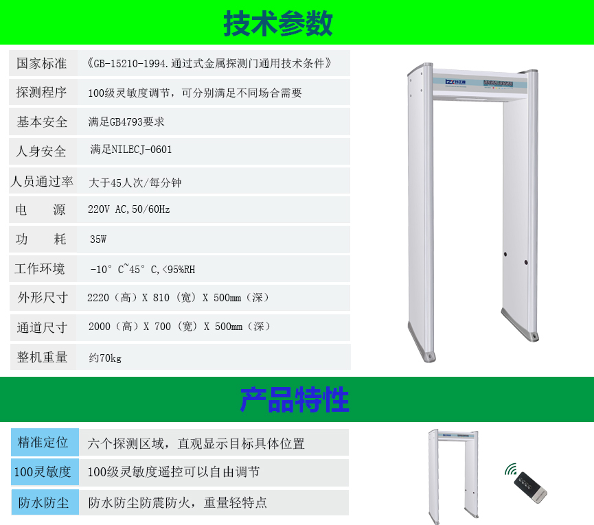 (1)符合标准:《GB 15210-1994. 通过式金属探测门通用技术条件》国家标准。
