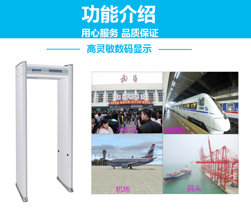 KZX-3AS型是针对出口的一款金属探测门,全方位6区域探测,定位精准,性能稳定。采用进口防火板为门板材料,有防火、防水、防震、重量轻等优点。门两侧柱子上安装有与人体等高的高亮度LED报警指示灯。门中建立有电磁场,当人体携带金属物品通过时能产生报警的装置,能准确探测到人身上或手体包箱中携带的金属物品或含有金属的物品,如各种金属制品、电子产品及其他含有金属的物品等,用来进行安全检查、防偷窃检查的一种有效工具,主要应用于政府机关、法院、监狱、看守所、机场、车站、体育场馆、会展场馆、娱乐场所、大型集会等场所以及五金、电子、首饰、军工、造币等工厂或企业。