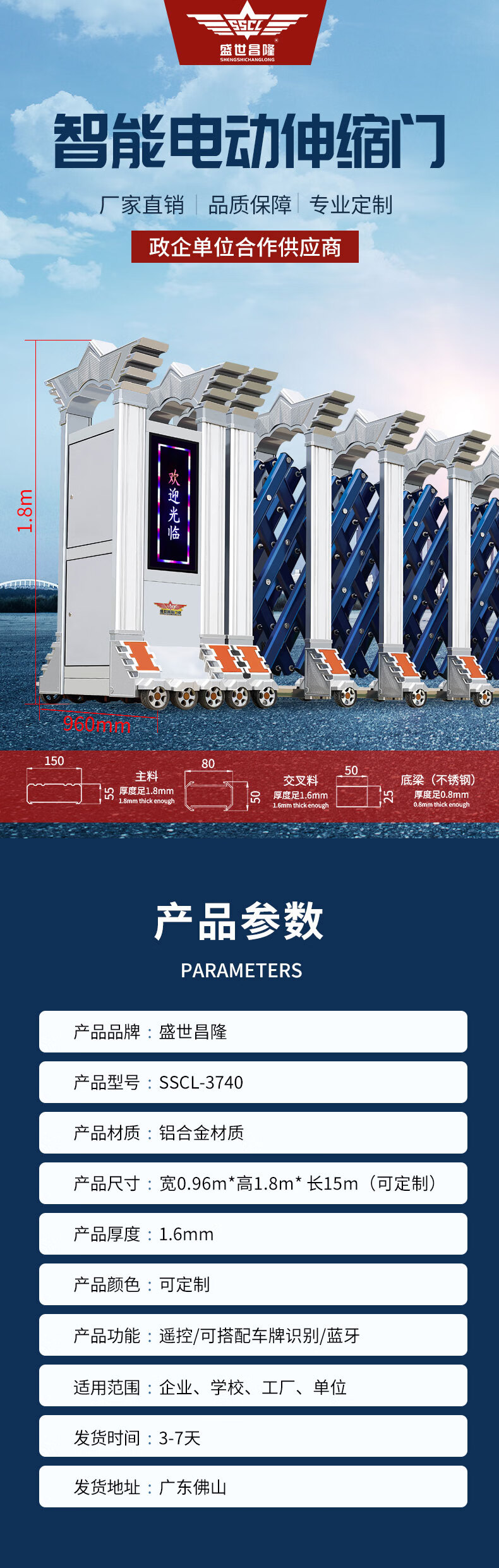 商品名称:盛世昌隆 SSCL-3740 铝合金伸缩门 电动大门 平移推拉门 单价每米