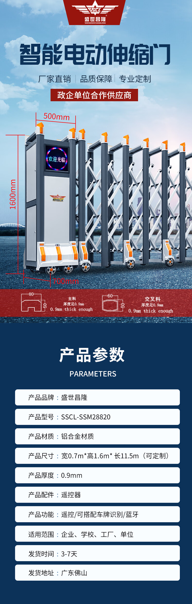 商品名称:盛世昌隆 SSCL-SSM28820 门禁系统 智能铝合金伸缩门学校政府电动大门单位 每套