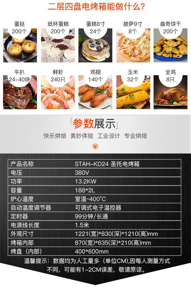 商品名称:圣托(Shentop)STAH-KD24 烤箱 二层四盘 全自动大型蛋糕面包披萨炉 2层4盘月饼电热大烘炉