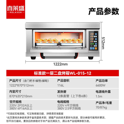 商品名称:喜莱盛 WL-015-12 电烤箱 烘焙电烤箱大容量烤箱精准温控一层二盘