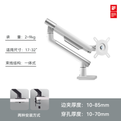 松能 T10-2W 电脑支架 显示器支架大尺寸显示器增高架支架显示器支架臂vesa支架T10系列承重18KG白色双臂显示器支架