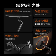 松能 T16-2 电脑支架 显示器支架曲面屏适用旋转屏幕显示器支架臂双臂