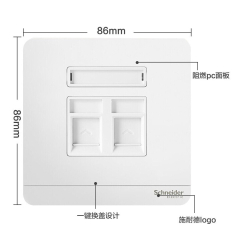 施耐德(Schneider)10AX 250V 开关插座面板86型电脑电视电话插座绎尚系列镜瓷白色网线网络插座 电话+超五类电脑插座