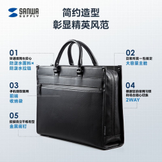 山业(SANWA SUPPLY)200-BAG124WP 收纳包 电脑包手提 防泼水大容量笔记本包 单肩包男 商务斜跨包 公文包日常通勤 15.6英寸 双仓收纳