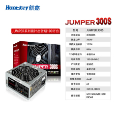 航嘉(Huntkey)额定300W JUMPER300S电脑电源 (单管正激/宽幅电压/背部走线/高性价比)