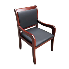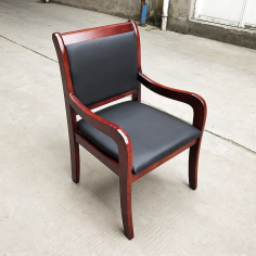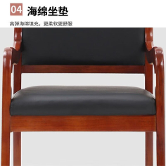 臻远 ZY-7602 会议椅 实木曲背带扶手加厚西皮皮革电脑椅580*570*900mm